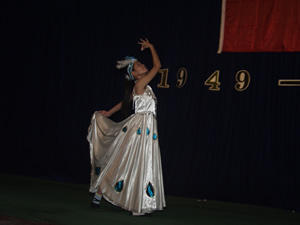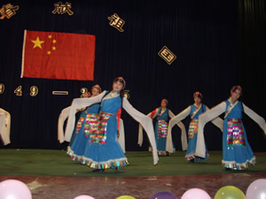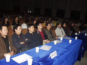 学院党委书记文锋、副书记索满囤,副院长刘晓玉、刘建彪、王文汉及学生科、团委的负责人与2000余名新、老学生欢聚一堂,共同庆祝祖国56周年华诞。