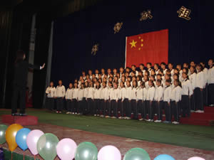 最后,经评委会评审,由南校区师生合唱的《今天是您的生日》、《校园之歌》和01—5会电2班的表演的《西班牙斗牛士》获一等奖;05—3会电4班的《竹楼情歌》、《Hip top》、《不如跳舞》等获二等奖;《军中姐妹》等五个节目获三等奖。演出结束后,学院领导走上舞台与全体学生演员合影留念。