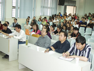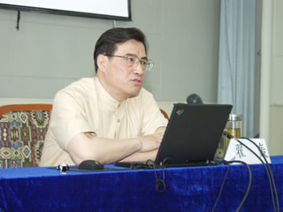 接着,翟轰对“评估工作概述”、“评估重点指标解析”、“学院自评工作”、“专家组考察评估的主要环节”等问题进行了系统详细的说明。在“评估概述”部分,他分别从“评估指导思想”、“工作方针”、“评估工作基本任务”、“评估依据”、“评估原则”、“评估程序”等方面作了讲解。使大家进一步明确了评估是学院改革建设发展的契机,是对学院存在价值的判断,是对学院人才培养质量的认证,其指标体系是学院进行日常管理的标准和依据;明白了要“以能否培养拥护党的基本路线,适应生产、建设、管理、服务第一线需要的高等技术应用型专门人才作为评价人才培养工作水平的基本标准”。学院要“从实际出发,准确定位,与时俱进,开拓创新,努力办出自己的特色”为指导思想;始终坚持“以评促建,以评促改,以评促管,评建结合,重在建设”的工作方针开展评估工作。他强调指出,评估的核心是建立标准(办学标准和质量标准),指标体系是标准的分解,指标是标准某一方面要求的具体化或行为化的体现;评估的关键是通过系统搜集学校人才培养工作的主要信息,在准确了解实际情况的基础上,实事求是地进行科学分析,作出正确的判断;评估的结果是形成教育行政部门批准的,对学校具有规范、激励、导向作用,体现社会对学校人才培养工作满意程度的具有一定权威性的评估结论。在“学院自评工作”部分,他讲了七个方面的问题,强调了深刻透彻理解指标内涵的重要性和自评资料中各种数据的一致性和真实性;同时介绍了专家组的工作情况,主要职责、任务及14个主要工作环节,并耐心地就每个问题作了说明。最后,他重点讲解了一级指标中综合反映学院全貌的“办学指导思想”,并结合他们学校的评估实际,从“学校定位与发展规划”、“教育思想观念”、“教学中心地位”、“产学研结合”四个方面进行了具体剖析,强调了创新项目和办学特色资料的整理对评估结论的影响。