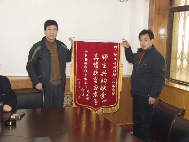正值瑞雪纷飞喜迎新春之际,由贵院帮扶的西乡县骆家坝乡回龙村400余群众怀着万分感激之情对全院师生情系巴山贫困村,真情扶贫献爱心的德政善举表示崇高的敬意。对你们捐赠的款物、科技书刊以及生活用品,广大贫困群众表示由衷的感谢,对您们千里帮扶犹如严冬的暖流,我们会永志不忘!在此,衷心祝福您们在新的一年吉祥如意,事业顺利!