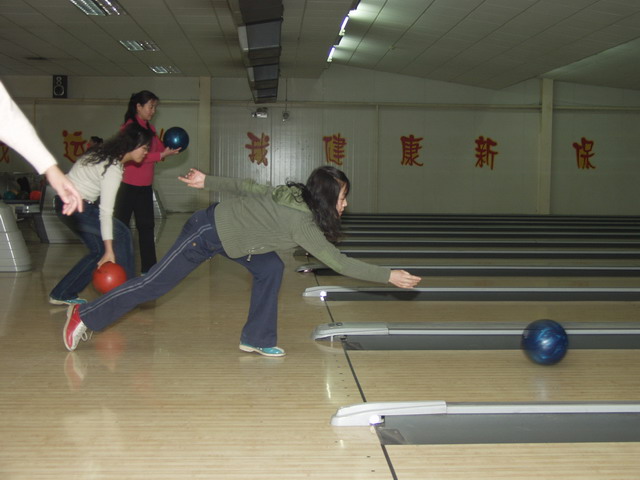 8日下午2时,在工会主席杨新彪带领下,第一组女职工来到彩虹保龄球馆。杨新彪发表了祝贺词,他说,今天是妇女节,我谨此代表学院领导和工会向女同胞们致以节日的问候和衷心的祝贺,祝各位节日快乐,身体健康,工作顺利!他又强调,一定要按活动的要求,在娱乐健身的基础上玩好,确保整个运动过程中的安全。娱乐中,五人为一组合进行比赛。大家按照工作人员讲解示范的技巧和规则,争先恐后,热情高涨。刚开始时,有的人不得要领,不是向左偏就是往右斜,经过几个回合的训练,逐渐进入状态。对于球技较高者,大家以掌声加以鼓励,其间笑声琅琅,这种热闹气氛和健身运动直至傍晚6时结束。随后,同志们来到“金海岸餐厅”聚餐,大家纷纷举杯,庆祝这个愉快的节日。