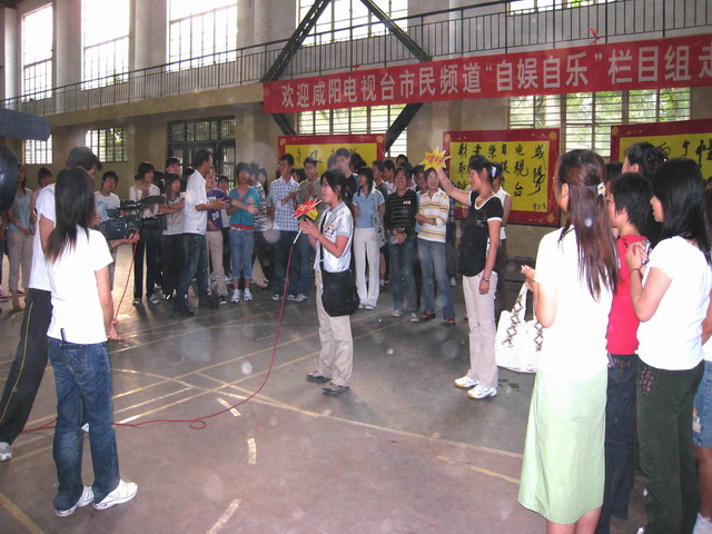 5月10日下午,应陕财职院会计系邀请,咸阳电视台市民频道“自娱自乐”栏目组走进校园与学生联欢。