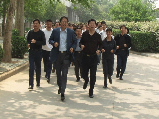 仪式结束后,在文锋、副书记刘文雅、副院长刘晓玉的带领下,各系部主任及师生们围绕学院进行了30分钟的长跑活动。体育场上掌声雷动,呐喊声此起彼伏,气氛热烈,师生们共同演绎着一幅“我锻炼,我健康,我快乐”的动人画卷。
