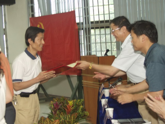 会议对06至07年度党务工作先进集体和个人进行了表彰,有3个党支部、27名党员和1名党务工作者受到表彰奖励。刘晓玉宣读了党委的表彰《决定》,出席会议的领导为获奖者颁发了奖状和荣誉证书。随后,举行了新党员入党宣誓仪式,50余名新党员面对党旗进行了庄严的宣誓,老党员们重温了入党誓词。