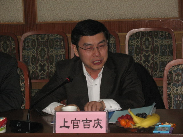上官吉庆副厅长在讲话中指出,省财政厅党组和维隆厅长一直非常关心学院的发展和评建工作,多次指示给予学院大力支持。今天教育厅、咸阳市领导的讲话,非常重要和中肯,体现了对学院的极大关怀和支持,使与会人员包括财政厅的同志都倍受鼓舞。下一步,学院领导班子和全体教职工一定要按几位领导的指示精神抓好落实,加倍努力,加大力度,做好评建的冲刺工作,争取达到预期的目标,不能辜负教育厅、咸阳市领导的期望。