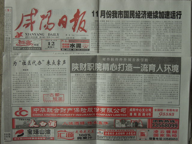(详见咸阳日报12月12日第一版;咸阳日报教育周刊12月12日第一版)