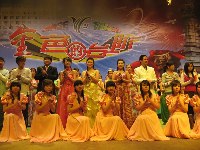 我院每年12月份都要举办一场“大学生素质教育成果展示文艺晚会”。本次晚会正值党的十七大召开不久,为了使学习贯彻党的十七大精神的形式和内容丰富多彩化,学院结合实际,紧紧围绕“金色的台阶”这个主题,以师生“学习贯彻党的十七大精神,推进大学生素质教育”为重点,集中展示了我院重视校园文化建设、师生多才多艺的素质教育成果,着重阐释了我院教师言传身教、矢志育人的不懈追求,充分体现了我院学生崇尚师德、感恩教育的良好素质。