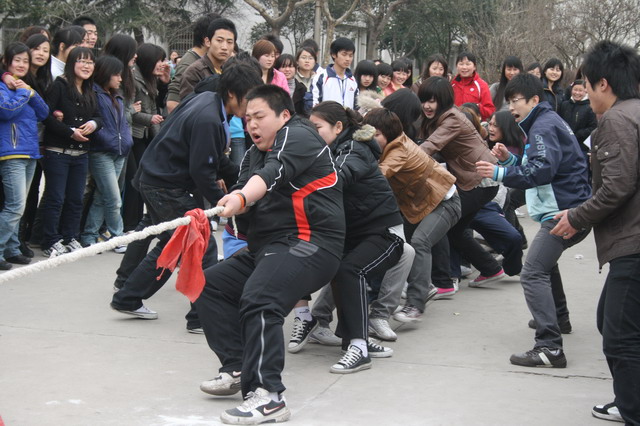 为庆“三•八”节,信息工程系团总支、学生工作科于3月5日、3月六日两天下午,在教学楼前举行了全系学生“迎三八拔河和跳绳比赛”,共有32个班级参加了比赛。经过两天激烈角逐,07-3会电1班等8个班级获得了一、二、三等奖。