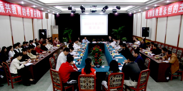 今年是第25个教师节,陕财职院充满节日气氛。9月10日上午10时,财政厅党组书记、厅长刘小燕专程来陕财职院看望广大教师,并同教职工一起在学院电教演播中心座谈。参加座谈会的有:咸阳市委副书记高和元,永安保险公司董事长张东武、办公室主任党欣,财政厅办公室主任陈小军、培训中心主任袁书群、教科文处副处长张文耀、人事处副处长刘亚,咸阳市财政副局长谢金鹏,陕财职院党委书记文锋,院长阎平,副院长刘晓玉、范忠、刘建彪、王文汉,党委副书记刘文雅及学院中层、教师代表共50余人参加了座谈。文锋书记主持座谈会。刘亚宣读了厅党组的慰问信。