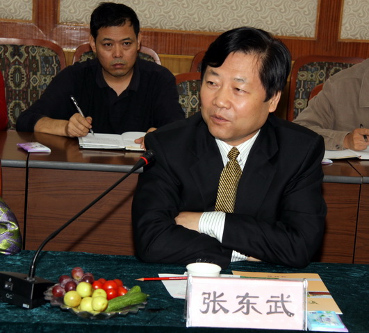 张东武董事长代表公司对陕财职院教职工表示节日的慰问,祝大家永远平安!他介绍了保险业的发展状况,认为保险业的发展还在起步阶段,需要大量的具有保险知识的专业人才,目前各大学在这方面设置的专业很少,希望学院在保险专业多做工作,愿与学院加强多年来的合作,支持学院的建设发展,携手共进,实行双赢。