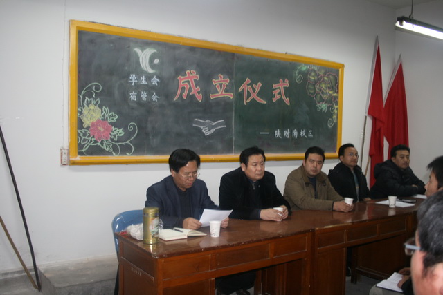 2009年12月8日晚9:00,陕财职院南校区在二号教学楼305会议室举行了南校区第一届学生分会、宿管会成立大会。院学工部部长、学生处副处长雷旭老师,院学工部副部长、学生处副处长王铁练老师,院学工部副部长、团委书记宋波老师,信息工程系党总支副书记、公寓管理科科长郭宝东老师及南校区全体辅导员参加了本次会议,会议由张朴老师主持。
