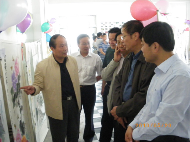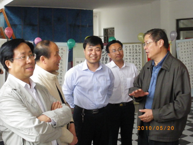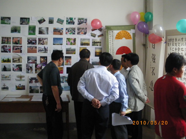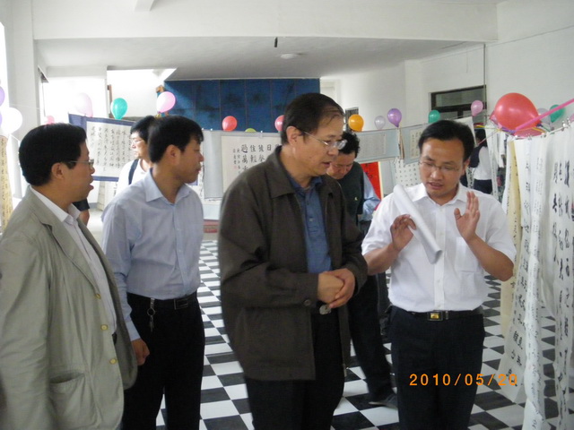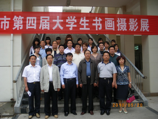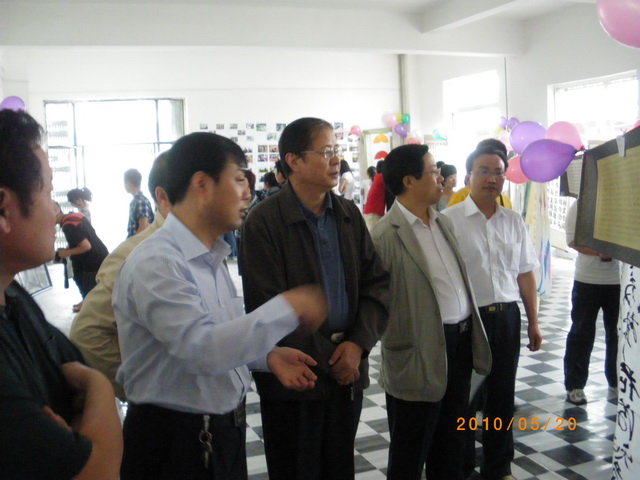 5:30,领导和来宾们来到展出现场,参观书画摄影和手工艺品汇展。大家边欣赏、边交流,在鉴赏艺术和分享知识的和谐氛围中愉悦心情,陶冶情操。每遇到构思巧妙、别具匠心的优秀作品时,大家更是兴致勃勃,赞赏有加。参观结束后,领导、来宾、评委和部分学生干部在礼堂前合影留念。