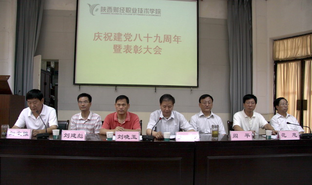 7月1日下午,陕财职院在多媒体教室召开全院党员大会,隆重庆祝建党八十九周年。出席大会的学院领导有党委书记文锋、院长阎平、副院长刘晓玉、范忠、刘建彪、王文汉、党委副书记兼纪委书记刘文雅。近300名新老党员参加了大会。刘文雅主持会议。