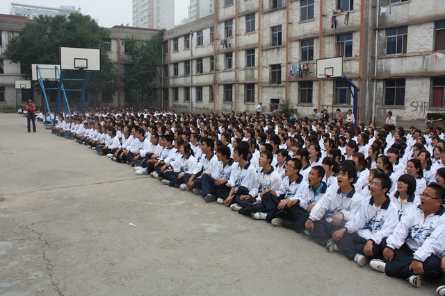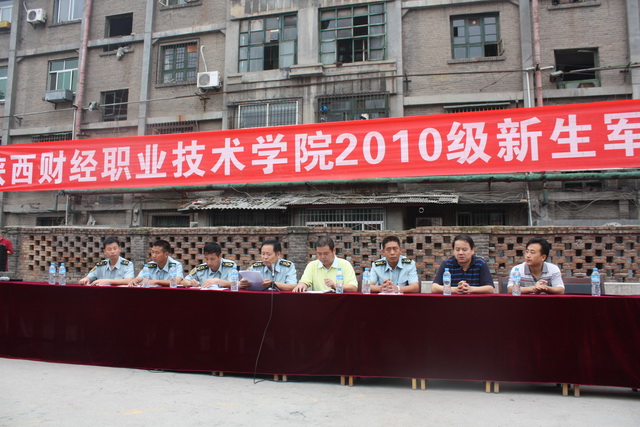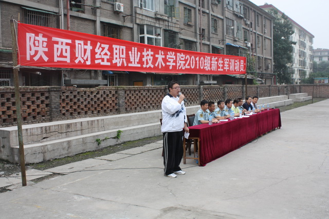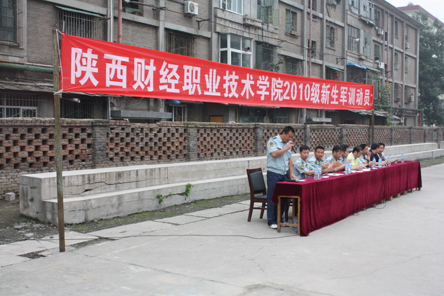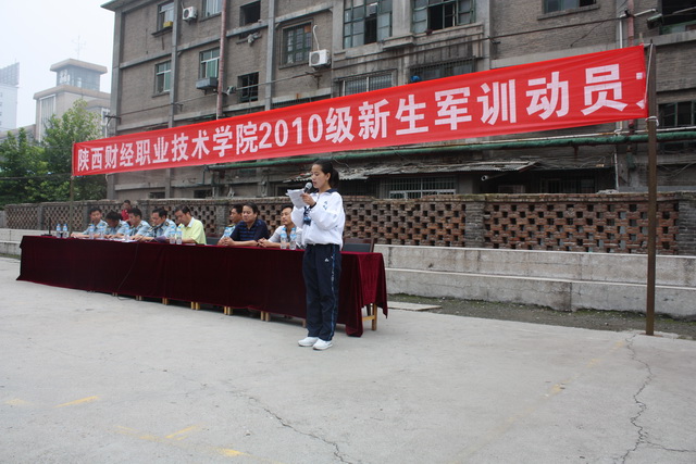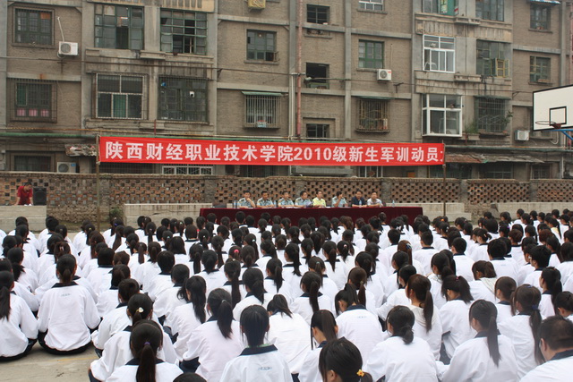 2010年9月5日上午,秋高气爽、云朗天清。伴随着同学们豪气冲天的歌声,陕西财经职业技术学院南校区2010级968名新生身着校服,精神抖擞,参加了在南校区操场举行的2010级新生军训动员大会。