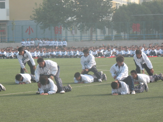 上午9:00时,在雄壮的国歌声中,军训总结汇报开始。17个军训连整齐列队,静候院领导的检阅,迎风招展的团旗从主席台缓缓而过。接着院长阎平同志、在参谋长卢允松同志和军训团副政委王铁练同志的陪同下走下主席台,对军训方队进行了阅兵,一声声“同学们辛苦了”,表达了领导对同学的关心和慰问;一声声“为人民服务”,传递了青年学生刻苦训练,勇于吃苦的共同心声。随后进行的是分列式,连队方队依次迈着整齐的步伐,通过主席台接受了分列式检阅。阅兵式和分列式后,分别进行了单个军人徒手队列表演、花样队形、军体拳、擒敌拳、反恐擒敌战术汇报、侦察兵捕俘等表演。同学们精彩的表演,博得了全场一阵阵热烈的掌声。在总结会上,军训学生代表孟超龙同学满怀激情地表达了十几天军训生活的感受,他把军训视作人生新的起点,表示在今后的学习生活中,保持和发扬军训中的吃苦耐劳精神,充实自己,完善自己。军训团团长杨庚辰同志在讲话中对参加军训的同学们给予了较高的评价,鼓励他们在今后的学习中发扬成绩,再接再厉,勇创佳绩。学院副院长、军训团政委刘建彪同志在大会上作了总结讲话,他在讲话中首先对同学们十多天的艰苦训练表示慰问,对渭北训练基地的全体教官表示感谢。接着他回顾15天来军训团中发生的事情,充满激情的动员大会、挥洒汗水和泪水的训练场、教官们手把手教同学们整理内务、教导员们辛苦的跟班训练以及对同学们爱的鼓励,还有精彩纷呈的歌咏比赛以及国防知识教育、入学教育等等,他总结通过军事技能训练课,同学们增强了国防观念,坚定了爱国主义信念,增强了组织纪律性和集体主义观念,培养了艰苦奋斗,勇敢顽强的作风,这对同学们的一生将是大有裨益的。最后,他还希望同学们,在以后的学习生活中,继续发扬军训中的好作风,把军训成果转化为优良的学风、校风,争取更大的荣誉和成绩。他希望同学们努力做到有雄心大志、志存高远;有博大的胸怀、与时俱进;自强不息、勇于创新。