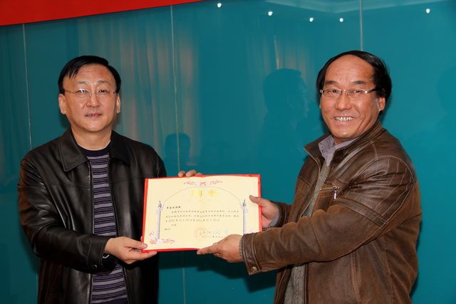 阎平院长为咸阳日报记者辛建斌颁发了学院客座教授聘书。