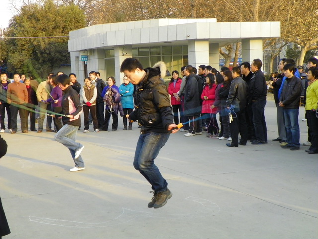 为了丰富教职工业余文体活动、锻炼体魄、增进友谊、增强集体凝聚力,12月28日下午4点,学院工会在教学楼前举行了跳绳比赛。130余人参加了比赛,各工会小组积极组织会员到达现场,或参加比赛或为参赛者鼓掌、加油、助威。首先进行的是个人单跳比赛,参赛队员有的双脚起跳、有的单脚轮换起跳,各个不甘示弱。最为精彩的是集体跳绳比赛,参赛队大家齐心协力、奋力拼搏,抡大绳的鼓足全身气力、跳绳的喊着口号协调动作、场外拉拉队则呐喊助威加油,整个场面热闹异常。经过紧张激烈的角逐,王华获得一等奖,叶雪获得二等奖,余梅、高健霞、钱涌宁、宋雅琴、李建兵、达航行、杨梅获得三等奖,第13工会小组获得集体一等奖,第二、三工会小组并列获得二等奖,第一工会小组获得三等奖。院工会主席杨新彪以及工会委员为获奖者颁发了奖品和奖金。杨主席在颁奖仪式说到:感谢大家对工会活动的支持,今天人员到位之多、场面之热烈,是前所未有的,希望通过这些有益的群众文体活动,增进友谊、增强体质,以健康的体魄为学院工作多做贡献。