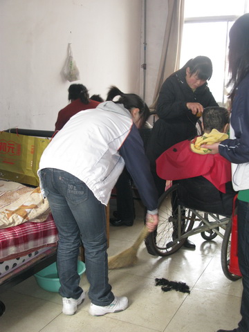 上午10时,志愿服务队来到学院团委的教育基地——咸阳市秦都区“夕阳红”托老中心,开展“敬老服务、奉献爱心”活动。志愿者们为30多位孤寡老人整理房间、打扫庭院、洗衣晒被。劳动结束后,同学们把椅子搬进阳光照耀的院子里,坐下和老人们一块拉家常。同学们给老人们讲校园里的新鲜事、有趣事,老人们笑逐颜开,仿佛和孙子孙女在一起;老人们给同学们讲岁月的无情、身体的毛病、生活的艰辛,希望同学们珍惜时光,用心学习,注重健康,一辈子要生活得有滋有味。同学们为了多给老人们快乐,他们还准备了文艺节目,欢歌笑语代替了院落昔日的静寂,同学们的热情表演,让老人们很开心。80多岁的张大爷说,财院的孩子们很懂事。