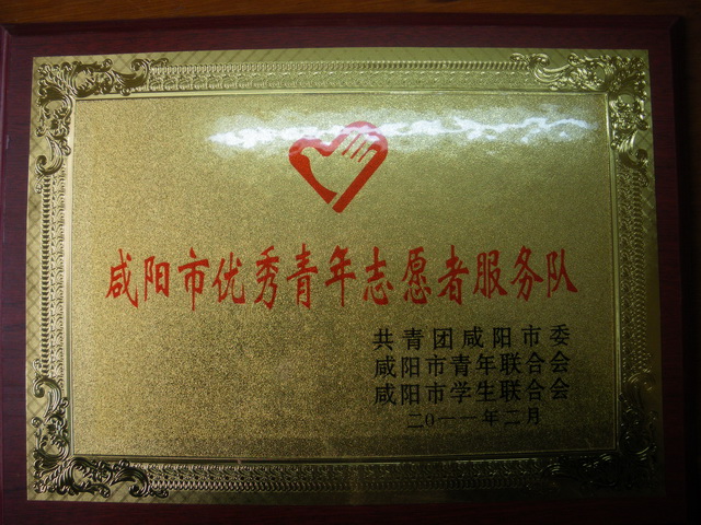 会上表彰了2010年度青年志愿服务先进集体,陕财职院南校区志愿服务队荣获“2010年咸阳市优秀青年志愿者服务队”(“雨滴”行动捐款时短量大,支援玉树灾区;铁干院内扶贫帮困,赢得好评;咸阳湖绿化带捡拾垃圾,服务双创;积极参与无偿献血活动,奉献爱心)。