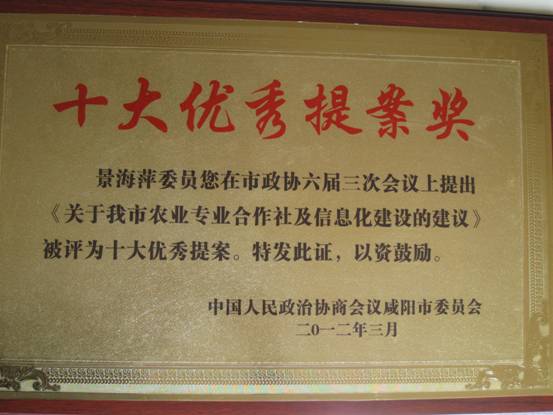 近日,咸阳市政协委员、我院教师景海萍向咸阳市政协六届三次会议提交的《关于我市农业专业合作社及信息化建设的建议》提案,荣获政协咸阳市“十大优秀提案奖”。这是自政协咸阳市六届全会以来景海萍第二次获得此奖项。