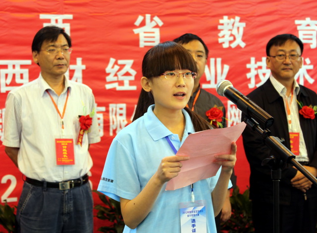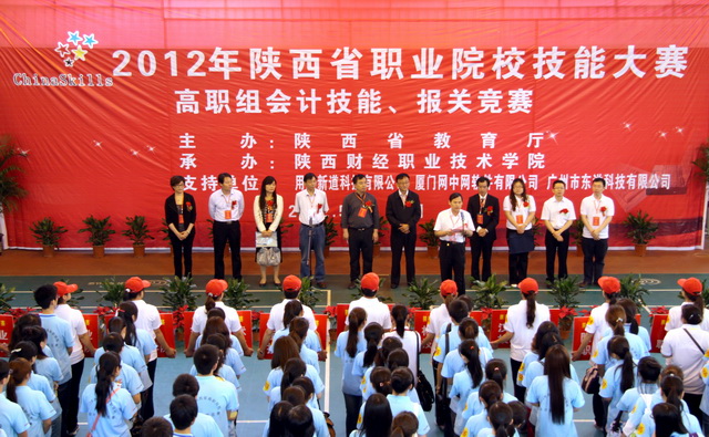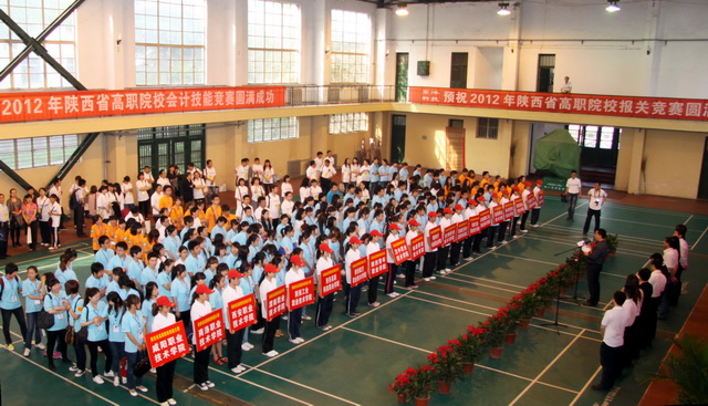 5月6日,2012年陕西省职业院校技能大赛高职组会计技能、报关竞赛在我院举行。出席竞赛开赛式的有陕西省职业院校技能大赛组委会主任委员、省教育厅高教处处长袁宁,西安科技大学副校长韩江水,陕西科技大学管理学院院长孙红梅,西安财经学院管理学院副院长崔智敏,陕西青年职业学院副院长赵兴刚,商洛职业技术学院党委副书记薛月莉,以及竞赛技术支持单位厦门网中网软件有限公司副总经理刘晓东、用友新道科技有限公司陕西分公司总经理倪莉芸、广州市东洋科技有限公司市场部副经理马纵宁。