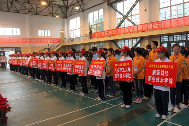 竞赛开赛式由赛项副主任委员、2012年全国职业院校技能大赛中职组会计技能比赛组长兼总裁判长、我院副院长刘晓玉主持。来自咸阳职业技术学院、商洛职业技术学院、西安职业技术学院、渭南职业技术学院、陕西工业职业技术学院、西安高新科技职业学院、陕西航空职业技术学院、陕西青年职业学院、汉中职业技术学院、杨凌职业技术学院、陕西电子科技职业学院、宝鸡职业技术学院、西安航空技术高等专科学校、陕西交通职业技术学院、陕西国防工业职业技术学院、延安职业技术学院、陕西警官职业学院、陕西职业技术学院、西安理工大学高等技术学院和我院共20个高职院校的41支代表队155名选手参加这次竞赛。