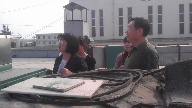 王文汉副院长代表学院对检查组的到来表示热烈的欢迎,对咸阳市和秦都区政府长期以来对我院的大力支持表示深深的感谢。后勤服务中心耿艺航副主任,汇报了学院在环保、“创模”方面的工作。我院一直重视环保工作,积极响应政府加快实施“蓝天工程”的号召,大力支持市、区环保工作。自2000年起食堂就开始使用液化气,2003年—2008年相继新建两座餐厅,改造一座餐厅,投资35万元用于食堂抽油烟系统,使用壁式斜流风机、轴流风机和离心式风机加隔油网对食堂油烟实现无害化排放,所有食堂全部使用清洁能源。2006年拆除了原燃煤锅炉,投资200余万元打了热水井用于洗浴和采暖。2007年投入100万元建设了一台燃气茶水炉,同年又投资约6万元用于学生食堂油烟分离设施的建设,2010年投资约3万元改造了食堂油水分离设施。我院的工作也得到了各级部门的肯定,被国家绿化委员会授予全国绿化模范单位、被咸阳市委、市政府评为双创工作先进单位。