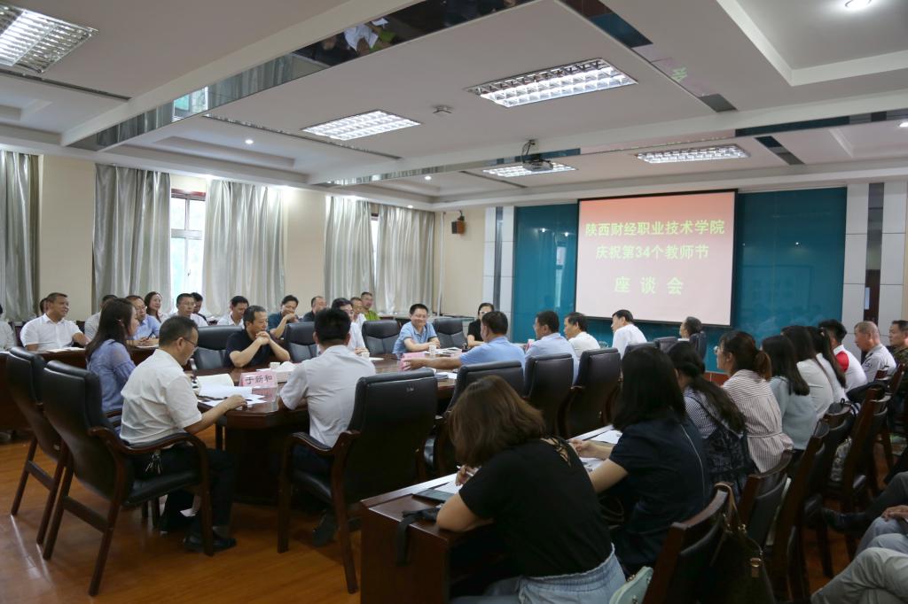 骆东山、董文红、校梅、梁小举在座谈中分别发表讲话,对我院广大教师致以诚挚的节日问候和祝福,对学院的办学理念、治学思路和教育教学改革实践表示高度认可,对学院近几年改革发展取得的成绩予以肯定。希望学院认真贯彻党的教育方针,切实落实立德树人根本任务,在教育教学改革、创新创业、一流专业建设、一流学院创建、基础设施改善等方面进一步加大工作力度,提高人才培养质量,为陕西经济建设发展培养更多的高素质技能人才。最后,他们表示将一如既往的关心、支持学院发展,助力学院打造财经教育品牌。
