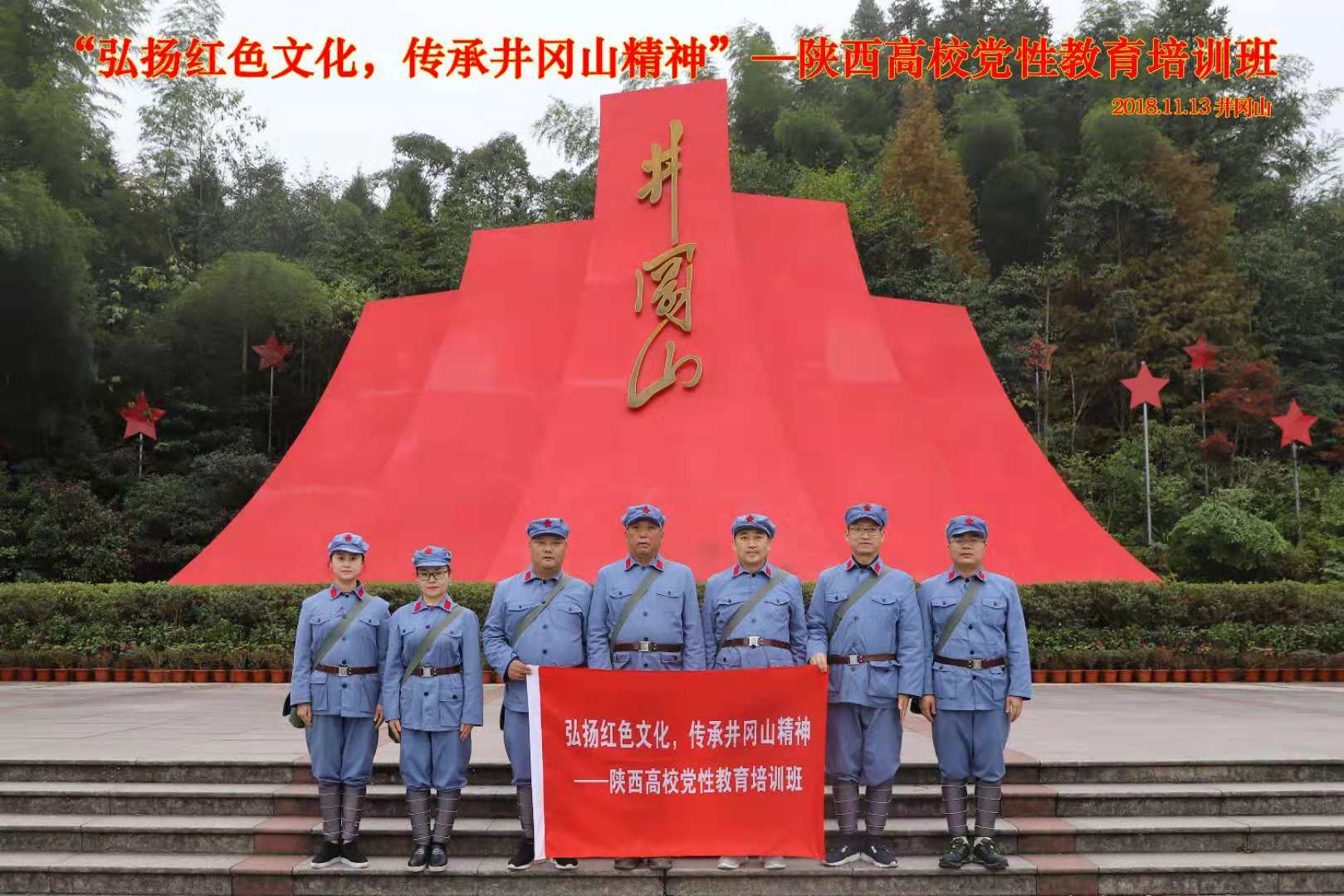 11月12日至16日,党政办公室副主任张朴带队、总务处副处长王勇、教务处副处长常茹、人事处副处长王国辉、思政部副主任殷蓬勃、财务处副处长陈善胜、组织部干事贺艳艳一行7人,赴江西井冈山接受党性教育培训。