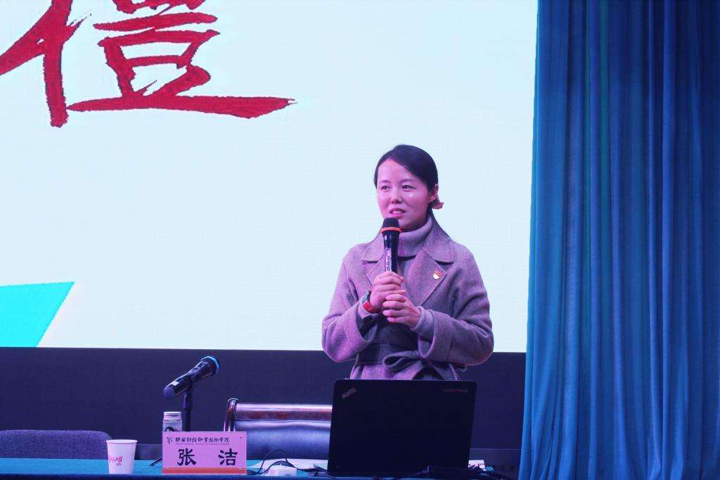 | 学院党委组织部副部长、党校副校长张洁为全场师生作专题讲座 |