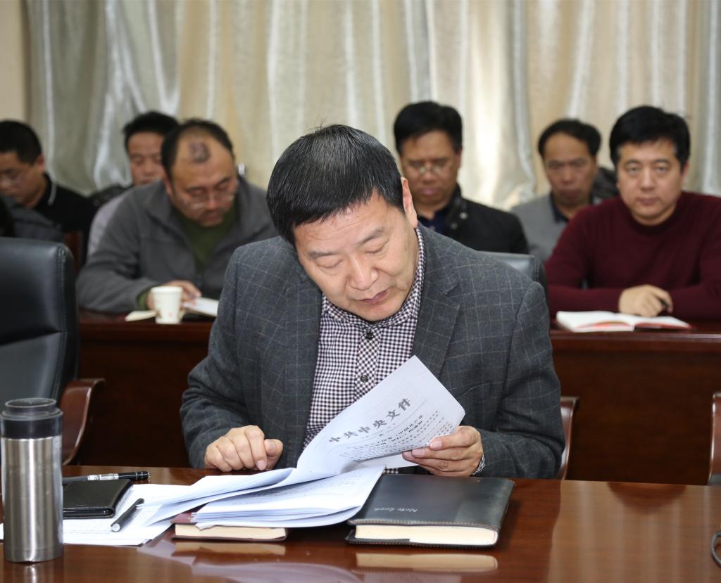 2018年12月18日下午,我院在办公楼四楼会议室召开党委理论中心组学习扩大会议。学院领导班子成员和全体处级中层干部参加,党委书记张志华主持。