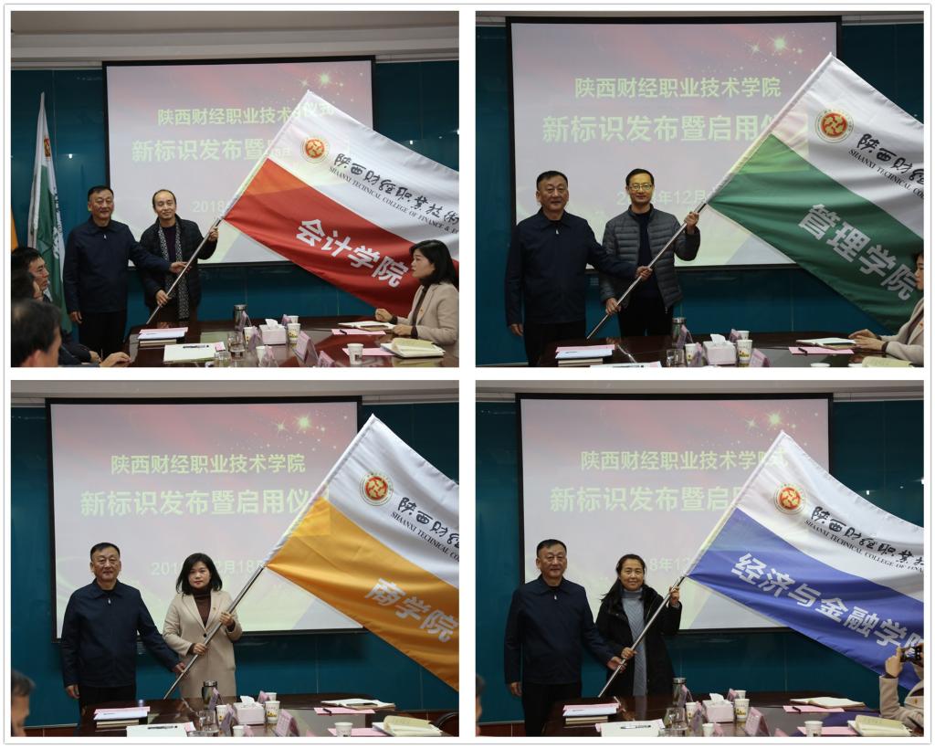 根据新标识,学院为四个二级学院制作了院旗,现场举行了授旗仪式。