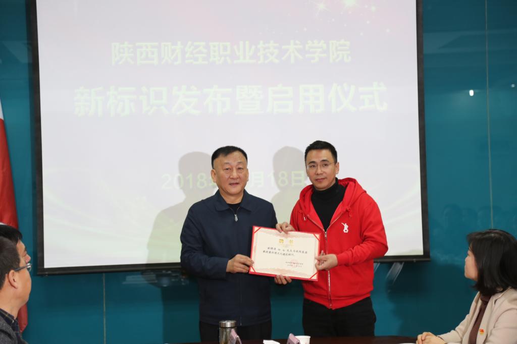 新标识设计者陆青先生介绍新标识的设计理念和标识释义。新标识的设计元素取自学院财经办学特色和学院治学思路、育人理念、学院精神,整体造型为四个象形“人”字构成中国古钱币造型,显示学院财经办学特色,“人” 字造型,结合孔子弟子拜师礼手势,体现学院倡导克己复礼,推崇尊师重教。新标识标准色选用红色,红色代表火,底色选用金色,代表财富、收获、辉煌,象征学院高等财经职业教育事业红红火火,将收获社会赞誉,再创事业辉煌。