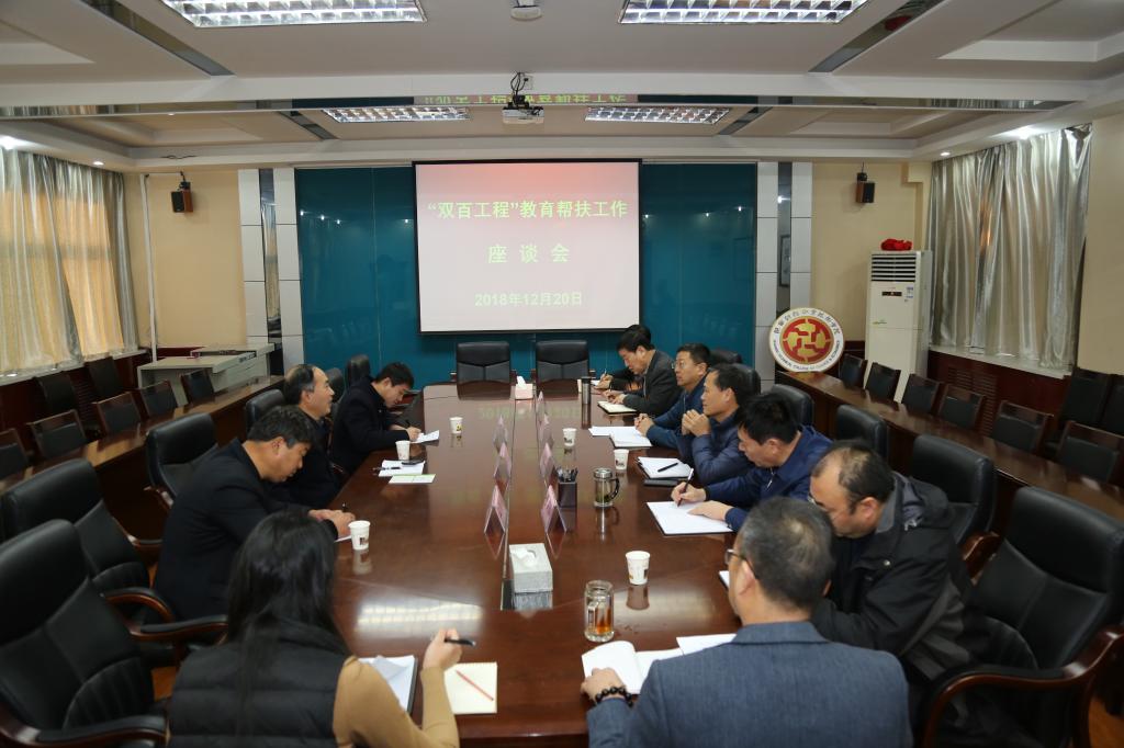 12月20日上午9时许,“双百工程”教育帮扶工作座谈会在学院办公楼四楼会议室召开。党委书记张志华主持会议。