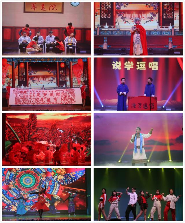 会计学院推荐的现代舞《别人家的孩子》将当今九零后、零零后的心声写入歌词,欢快的舞蹈充分展现了我院年轻学子的青春活力。由管理学院、社团联合会联合选送的戏曲《花木兰》,演员演唱功底娴熟,同时展示了“镂金雕银”剪纸社的同学们通过高超的剪纸技艺制作的《筑梦陕财,厚德余人》主题作品,让大家叹为观止。会计学院选送的歌伴舞《卓玛》尽显民族风情,浑厚的嗓音配合热情奔放的舞蹈将我院学子的歌舞功底展现的淋漓尽致。南校区选送的相声《为人民服务》将社会发展过程中衍生出的不良的社会现象以艺术的手法编进剧本,用幽默风趣的语言教育广大青年要弘扬社会正能量。