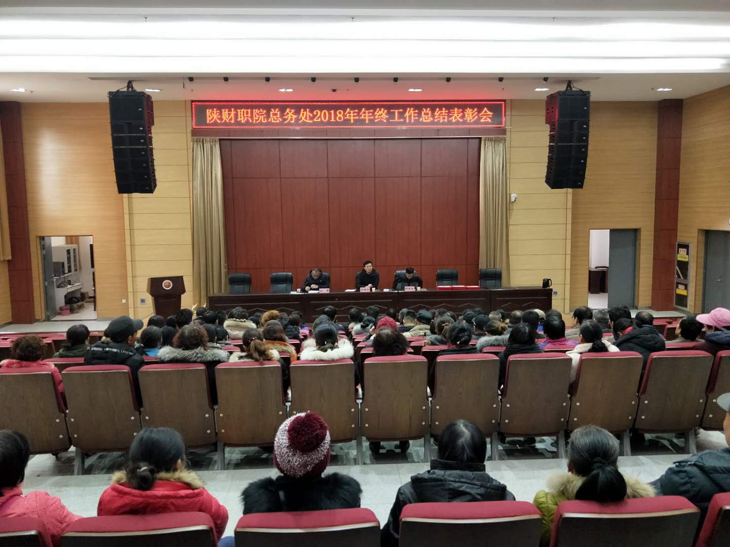 1月12日下午,总务处全体在编及编外员工110余人在学院学术报告厅召开2018年度工作总结会暨优秀员工表彰大会。学院副院长于新和、总务处处长郭宝东、副处长王勇参加会议。会议由王勇主持。