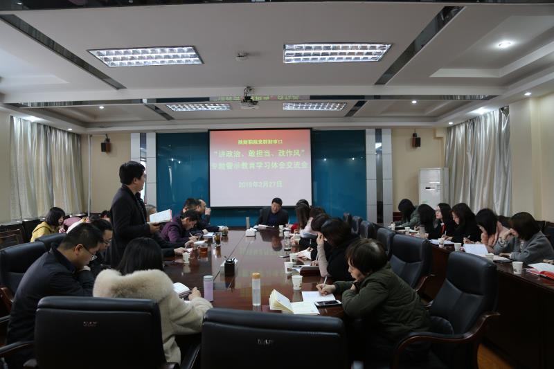 2月27日下午,我院党委组织部、党委宣传部、纪检监察处、财务处、审计处、工会、团委等部门全体教职工在办公楼四楼会议室,集中观看《贪与悔——佳县县委原书记辛耀峰严重违纪违法案的警示》《“讲政治、敢担当、改作风”专题教育警示片》和《一抓到底正风纪——秦岭北麓违建别墅整治始末》新闻专题片。