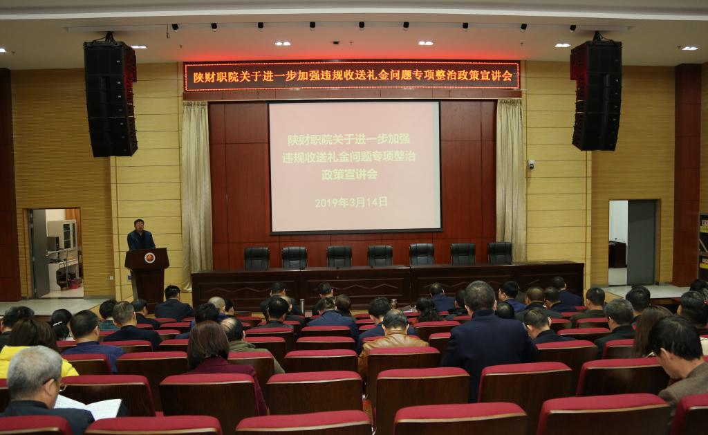 2019年3月14日下午,我院在学术报告厅召开关于进一步加强违规收送礼金问题专项整治政策宣讲会。学院领导班子成员、全体处级中层以上干部参加会议。学院党委书记张志华作政策宣讲。党委副书记兼纪委书记刘文雅主持。