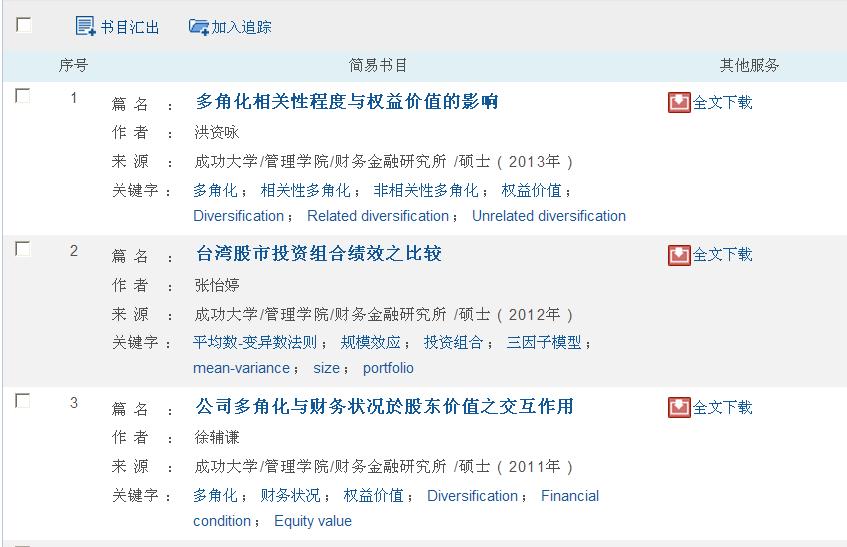 1. 机构、系所浏览:做树状浏览,可快速点选所欲查阅的机构、系所的论文,分为三个层次:学校、学院、系所。