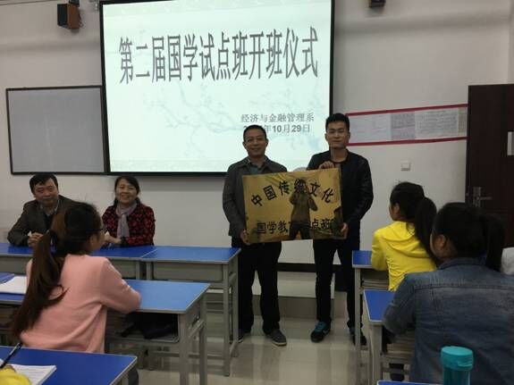 10月29日下午4点,经济与金融管理系在综合楼611教室召开第二届国学试点班开班仪式。经金系副主任景海萍、专职副书记王省军、基础部王养正老师出席,第二届国学试点班14级金融二班全体学生参加,经金系辅导员连静主持。