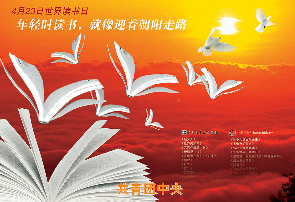 1995年,联合国教科文组织宣布将4月23日,作家塞万提斯和莎士比亚的辞世纪念日定为“世界读书日”,要求社会成员人人读书,图书成为生活的必需品,读书成为每个人日常生活不可或缺的一部分。自“世界读书日”宣布以来,已有100多个国家和地区参与此项活动。每年的4月23日,在世界的五大洲,在不同语言的国度里,人们不约而同地做着同样的事情——读书。这是全世界读书人共同的节日!