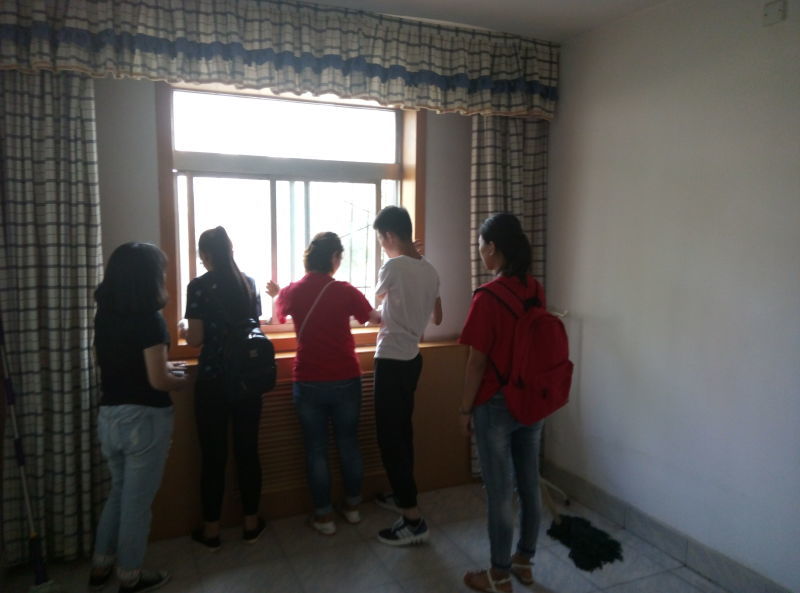 他们身着红色“中国梦”服装,在综合楼前集合,在会计一系学生党支部书记贺适的“不喊口号,只干实事”的号召指引下,分头去扫地、擦桌子、拖地、洗窗帘……红色的身影活跃在大家身边,留下窗明几净的办公室和一尘不染的楼道,他们用行动演绎着“爱”的故事,给全院老师送上了最“精彩”的礼物,深深地感染着每一位老师,受到大家的一致好评和点赞。