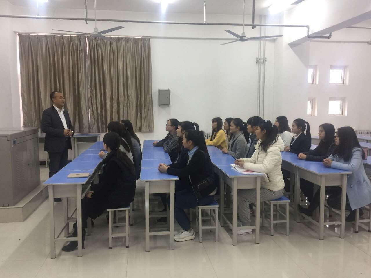 为了提高学生职场能力,帮助学生熟悉企业文化,尽快融入到企业大环境中,2016年11月7日,中国玉祥集团的培训专家于综合楼514教室为我系2014级毕业生进行入职培训。