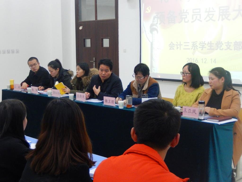 2016年12月14日,会计三系学生党支部在综合楼514教室召开学生预备党员发展大会。会议由会计三系专职副书记张晓战主持召开。