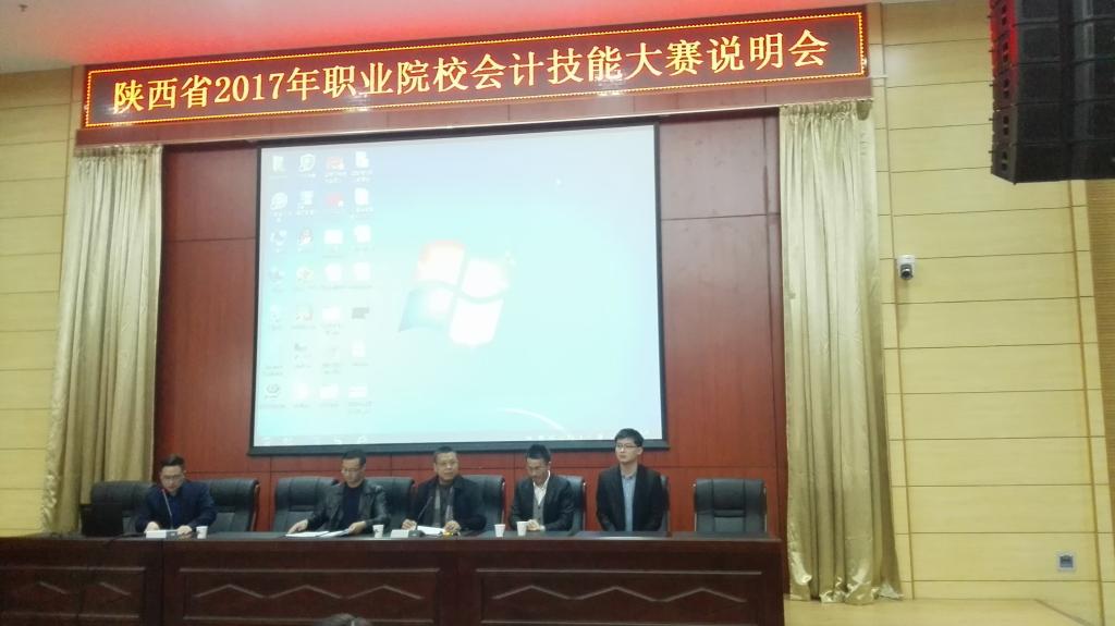 3月3日下午14:30在我院报告厅举行了“陕西省2017年高等职业院校技能大赛会计技能赛项说明会”。会议由会计一系主任马西牛主持,会计一系副主任曾贵荣对本赛项的赛项规程进行了详细说明,网中网软件公司及新道科技股份公司技术代表队分别对竞赛平台做说明。