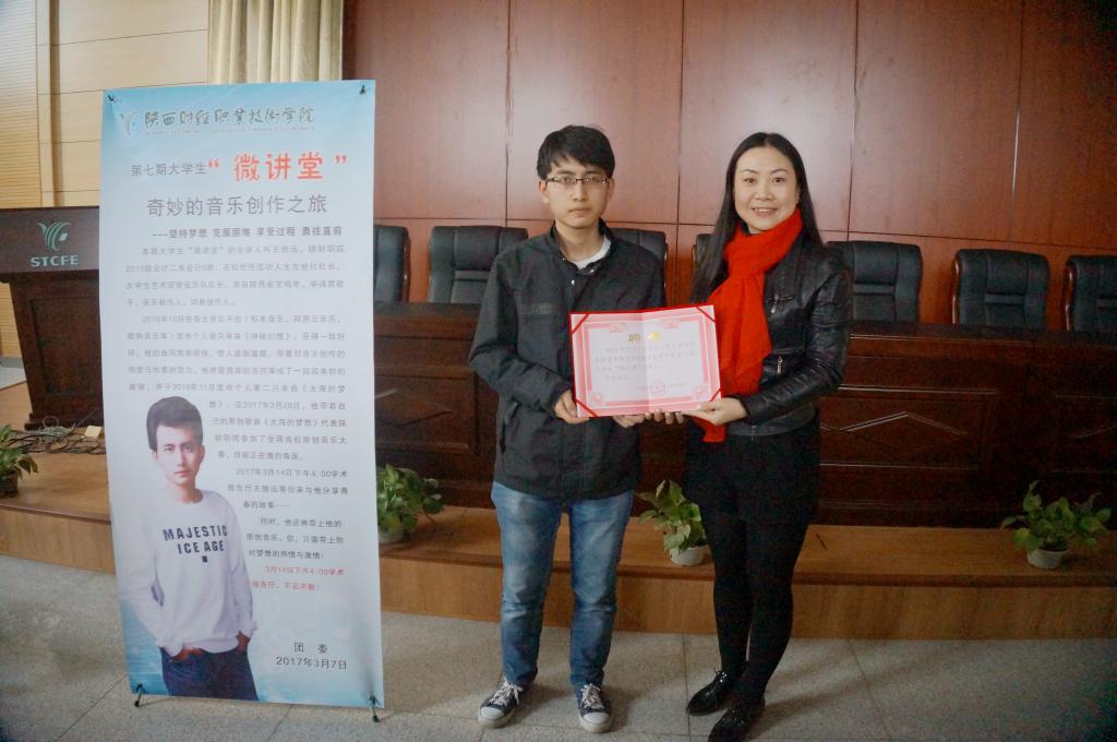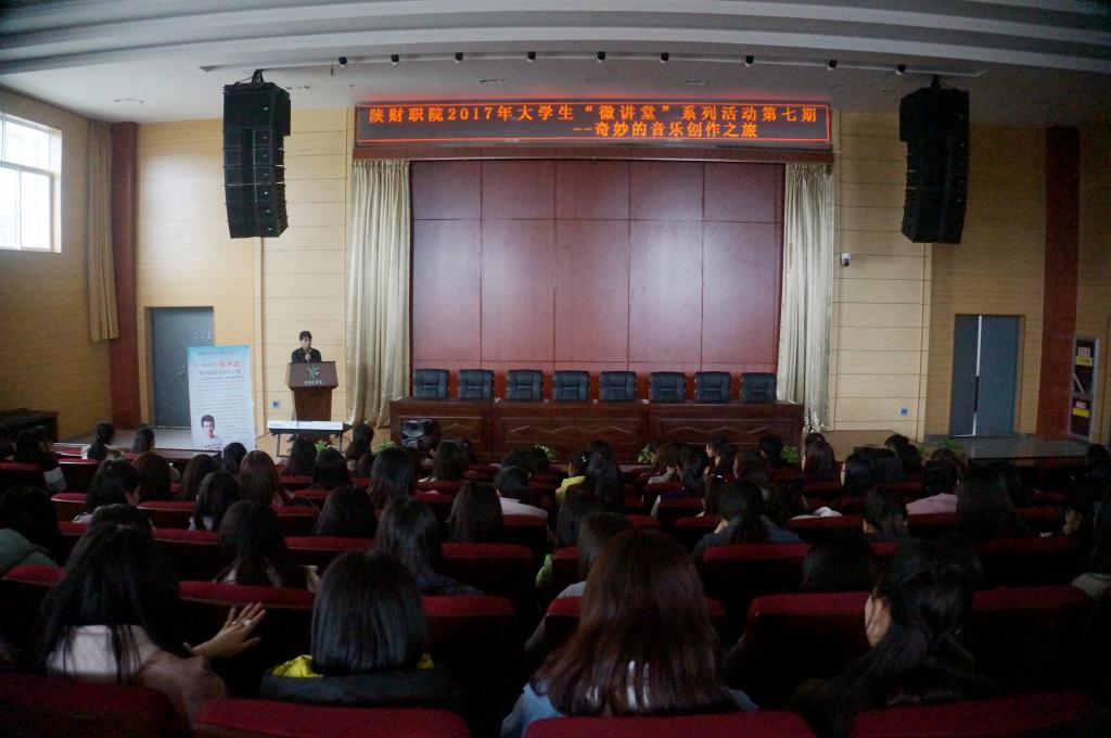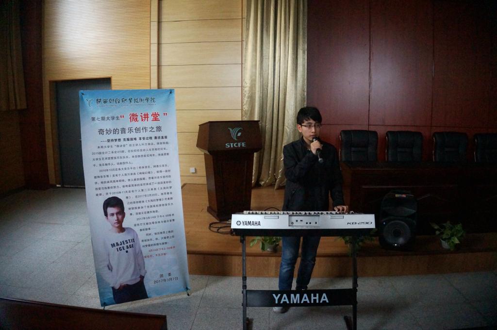 团委于3月25日下午4:00在学术报告厅举办了2017年大学生“微讲堂”系列活动第七期,本次“微讲堂”主讲人是2015级会计二系会计5班的王驰远同学。他以《奇妙的音乐创作之旅》为题,为同学们带来一场关于音乐创作心路历程的专题讲堂。