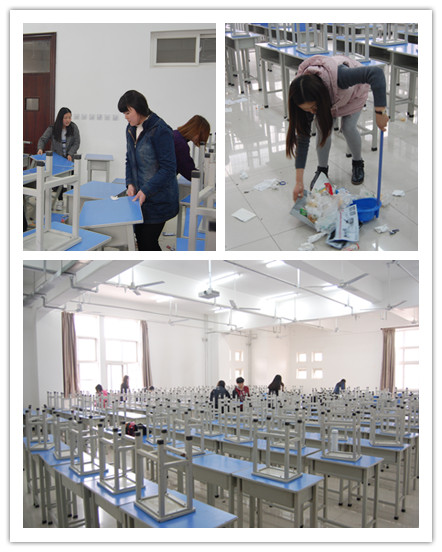 2017年3月16日11时40分,会计三系各班学生干部及入党积极分子参与了对教学楼合班教室大扫除活动。本次活动目的在于为在校学生提供干净整洁的学习环境,为各位学生爱护公共卫生做出表率。