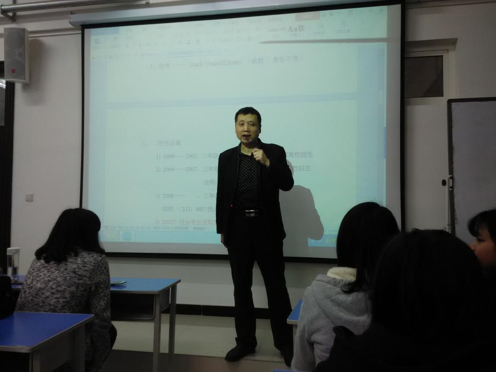 近年来,我院学生报考陕西省普通高校专升本招生考试的人数不断增加,今年达到826人。为了积极引导同学们的学习热情,提高我院学生专升本考试升学率,扩大我院办学影响力,3月22日下午,基础课教学部特安排外语教研室康涛老师在综合楼314合班教室对2015级学生做了一场主题为“陕西省专升本考试政策解读及复习备考策略”的专题讲座。根据自己多年来在专升本考试上积累的教学经验,康涛老师从考试重要性、考试政策和复习方法等三方面对同学们进行了详尽地阐述说明,并在讲座结束后对同学们存在的疑问做了耐心解答,讲座收到良好反响。