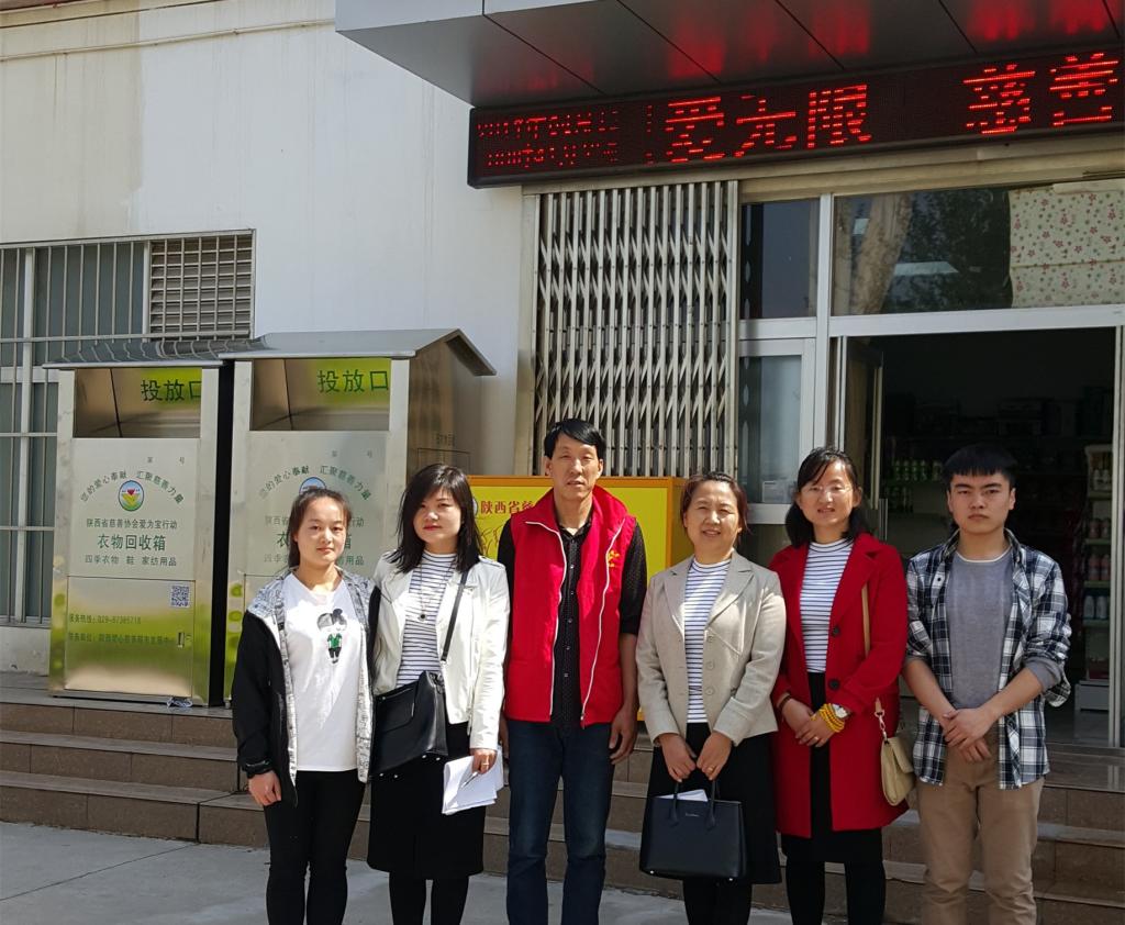 2017年4月12日,陕西省慈善总会在我院投放四个衣物回收箱,其中两个置放于慈善超市门口,另外两个置放于家属院门口,分别方便学生和教职员工进行废旧衣物捐赠。捐赠的废旧衣物将由慈善超市志愿者统一回收存放,再交由省慈善协会送往废旧衣物加工厂,进行分类处理、再生利用,最终将被用于全省贫困地区的慈善救助。