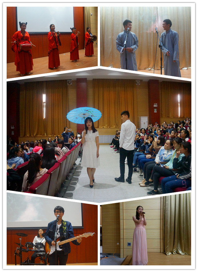为了充分体现此次活动的意义,承办活动的社团利用课余时间筹备两月有余,通过古典舞《落花情》、经典诗文朗诵《雨巷》,相声《谷雨趣谈》、《童年回忆》、话剧《三句半》等十个紧密结合农耕文明主题的节目将农耕文化展现的淋漓尽致。让在场的同学们不仅感受到浓浓的艺术氛围,更重要的是对中华民族传统文化——谷雨节气的知识有了更深入的了解。吉他社、声乐社的歌曲联唱把本场活动推向了高潮,报告厅响起了热烈的掌声。